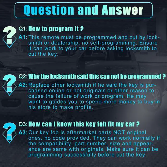 1.Please make sure the remote programming can work to your vehicle before asking locksmith to cut the key. Don't wait for him to cut the key and discover that it does not work, which may make a loss.