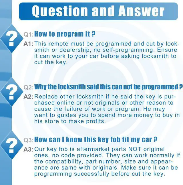 1.Please make sure the remote programming can work to your vehicle before asking locksmith to cut the key. Don't wait for him to cut the key and discover that it does not work, which may make a loss.