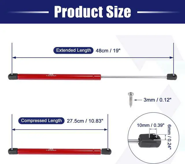 Total Length: 36cm / 14.17", Hole Center Distance: 34cm / 13.39", Rod Length: 12.5cm / 4.92", Housing Diameter: 18mm / 0.71", Connecting Rod Diameter: 8mm / 0.31".