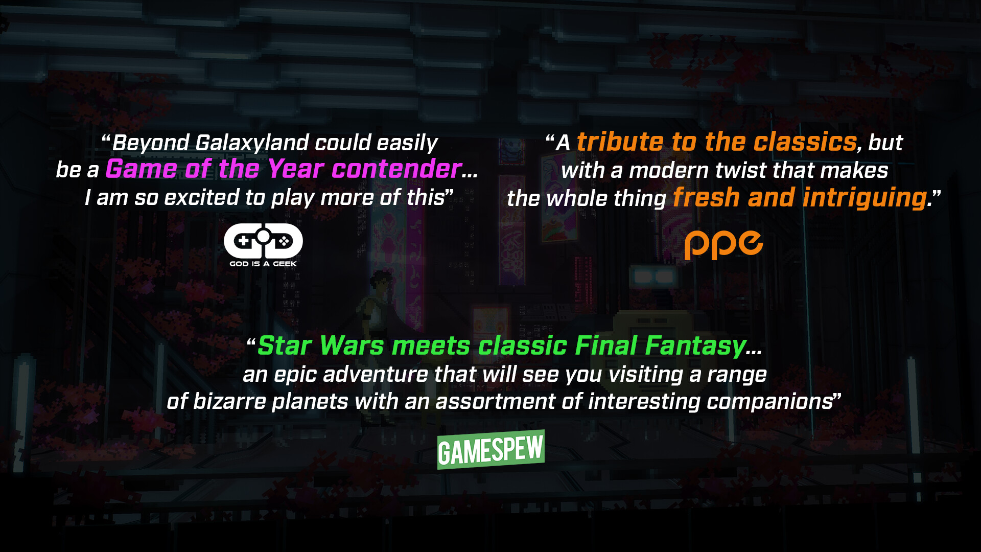 Experience firsthand all the thrills and spills of a retro sci-fi adventure, in an all-new take on the fish-out-of-water tale that sticks you right in the centre of the action! Laughter, loss, peril and friendship, Beyond Galaxyland has it all and then some, dipped in a dazzling layer of neon-tastic pixels.