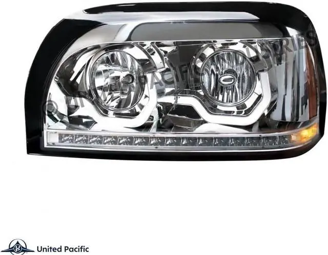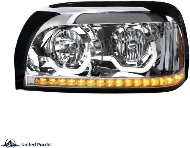 Chrome Freightliner Century Headlight with LED Turn Signal and LED Position Light Bar
