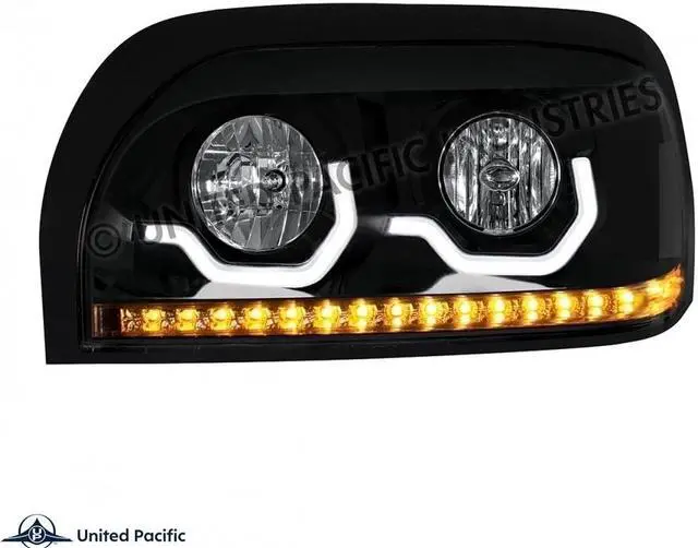 Chrome Freightliner Century Headlight with LED Turn Signal and LED Position Light Bar