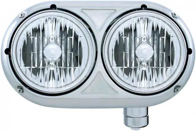 (BOX) 304 STAINLESS STEEL PETERBILT 359 CRYSTAL HALOGEN DUAL HEADLIGHT - PASSENGER
