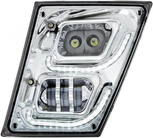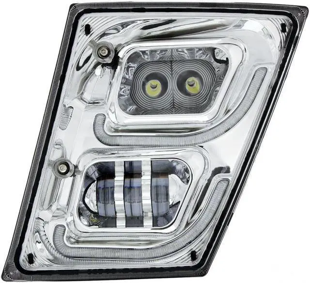 Chrome High Power LED Fog Light with LED Daytime Running Light & LED Position Light for 2003 - 2017 Volvo VN/VNL - Driver