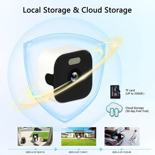 - [Cloud Storage & Local Storage] You can store the video on micro SD card (up to 256GB, not included) or cloud service (optional subscription) to ensure your data is safe and avoid the risk of losing important content