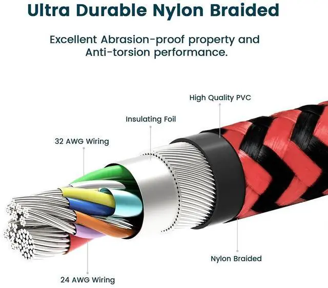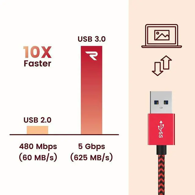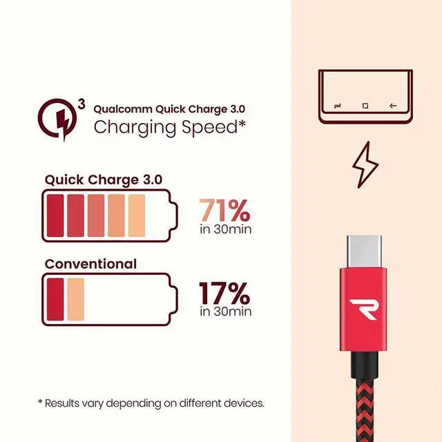 With Qualcomm Quick Charge 3.0 technology, this 10ft Red USB-C to USB-A charging cable can quick-charge QC 3.0 Compatible devices like Samsung Galaxy S9 from 0 to 70% in 30 minutes. Also comes with USB 3.0, Files can be synchronised in seconds. The aluminium connector and double-braided nylon coating make it ideal for everyday wear and tear. The cable is compatible with almost all phones and tablets with a USB Type-C port, including but not limited to Samsung Galaxy , Sony , Bose , Google Pixel , LG , Sony Xperia, Moto, HTC, GoPro etc.