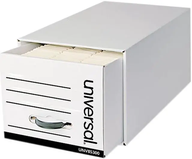 | Specifications | Box Style: General Storage Box Type: Easy Assembly Material(s): Corrugated Fiberboard Strength: Heavy-Duty File Size Format: Letter Width: 14" Depth: 25 1/2" Height: 11 1/2" Inner Width: 12 1/2" Inner Depth: 23 1/2" Inner Height: 10 1/4" Closure: Drawer Handle: Reinforced Plastic Maximum Stacking Height: 5 |