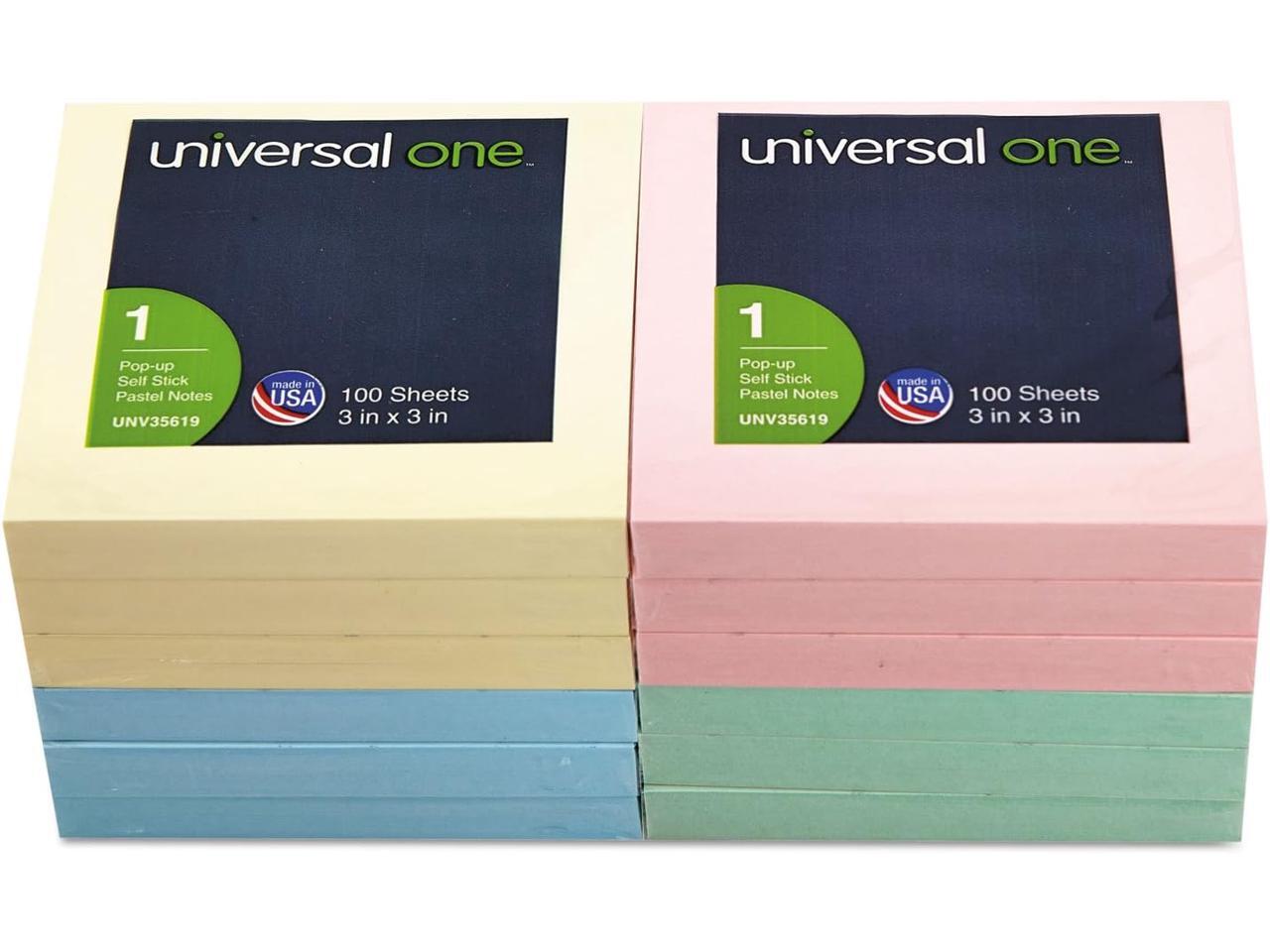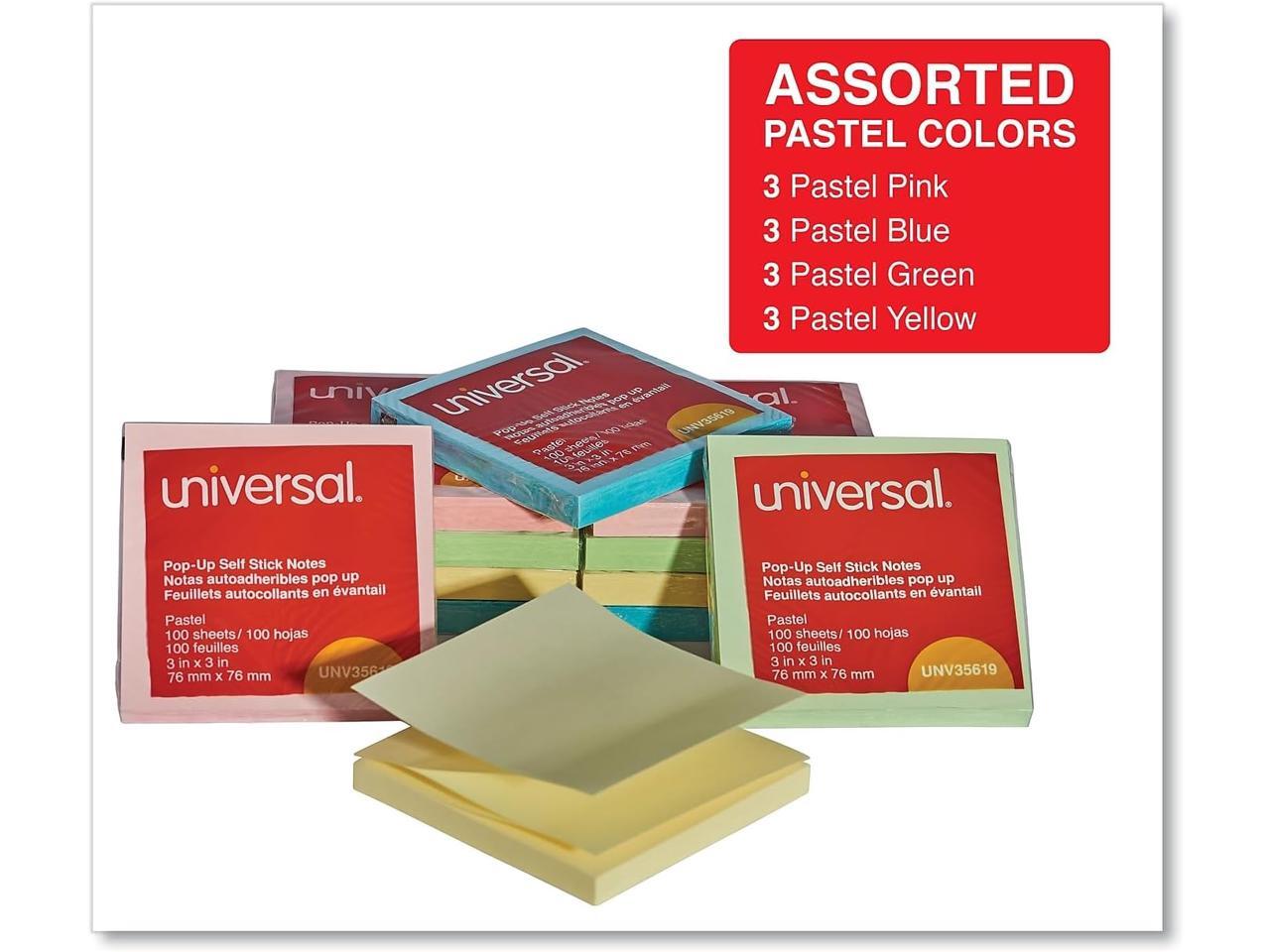 Universal UNV35619 Fan-Folded Self-Stick Pop-Up Notes, 3 x 3, 4 Assorted Pastel, 100-Sheet, 12/PK