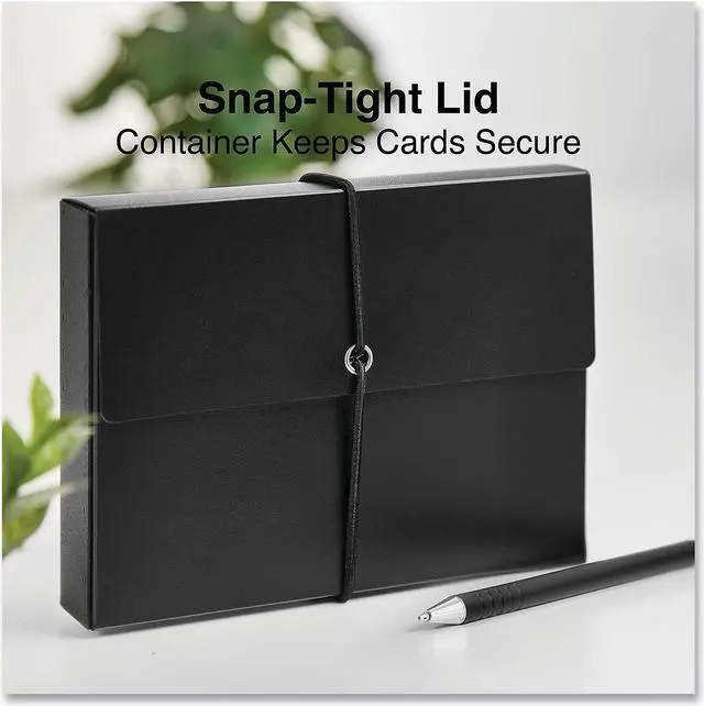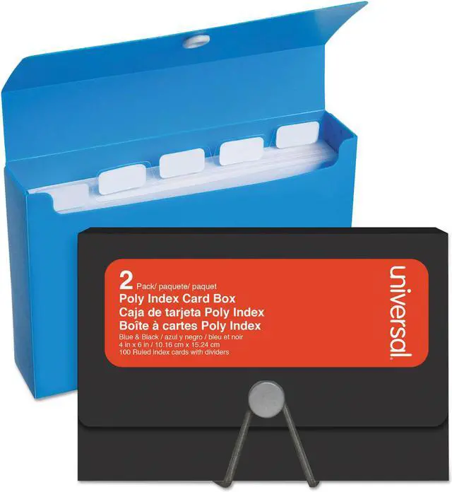 Durable polypropylene card box protects and holds index cards in order. Includes poly dividers to keep your index cards organized. Holds up to 100 index cards.