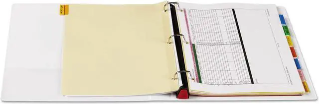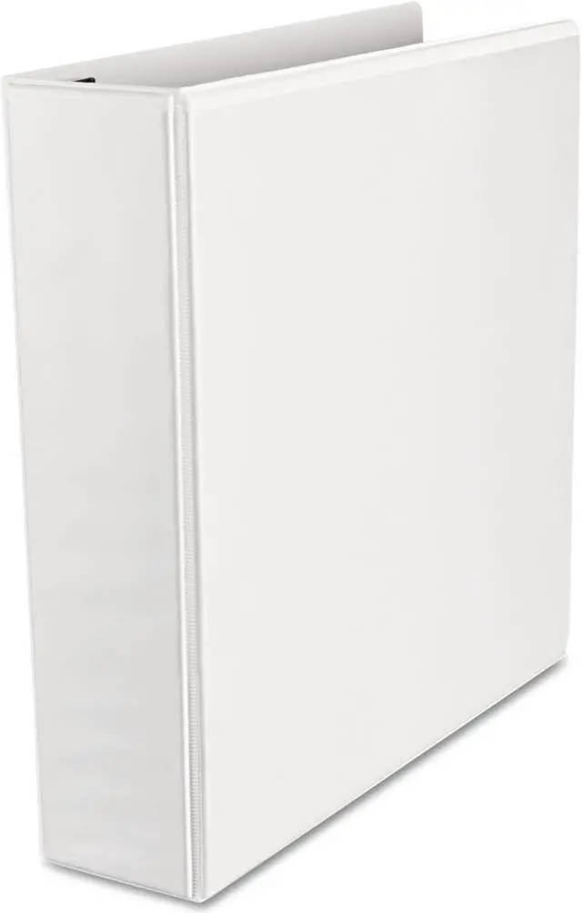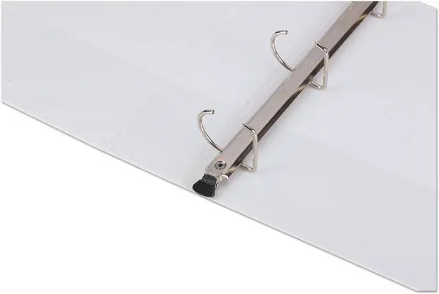 Snag-free D-rings hold more sheets than standard round rings, and an innovative push-button mechanism makes opening and closing a breeze. Extra-wide, heavyweight covers accommodate tabbed indexes. Frosty clear, top-load overlays on each of the three external panels enable total customization. 3 1/2" deep interior pockets match the frosty-clear overlays, providing full visibility of the top-most of your stored loose sheets. Non-stick poly material -- pockets and overlays will not lift print. Capacity Range [Max]: 2"; Sheet Capacity: 540; Color(s): White; Binder Sheet Size: 11 x 8 1/2.