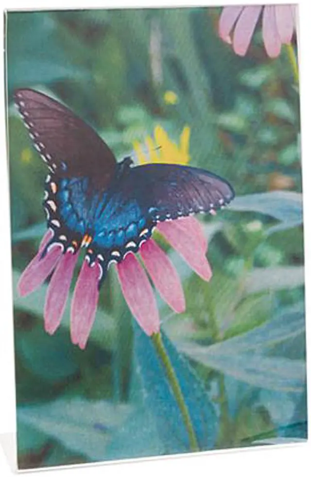 Ideal for schools, restaurants, reception areas and just about anywhere you'd like to display important information. Freestanding, angled L-style design ensures easy-viewing while enabling both horizontal and vertical display orientations. Economical frame is made entirely of durable, shatter-proof material.
