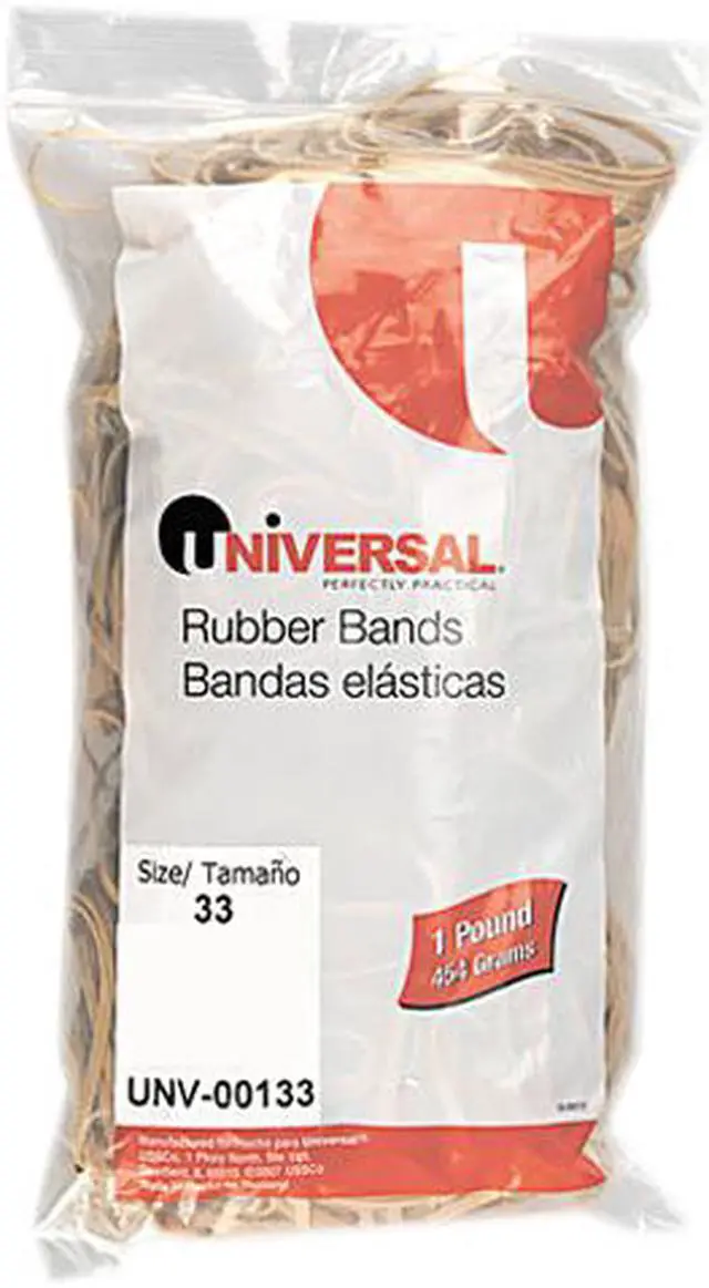 An excellent value, pound for poundbuy by the weight, and reap the savings associated with buying in bulk. High-rubber content, never less than 70%, ensures excellent elasticity and a high break point. Use them in the office, in your shop or in your kitchen. They even meet all FDA requirements for direct food contact. Approximate Band Count: 640; Band Trade Size: 33; Band Gauge: 0.04"; Band Width: 0.13".