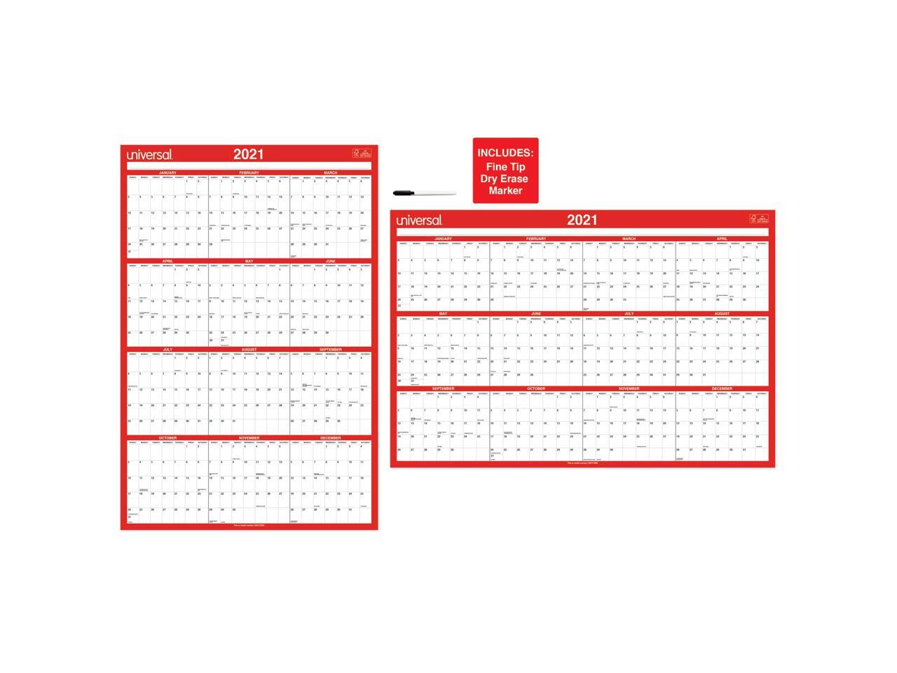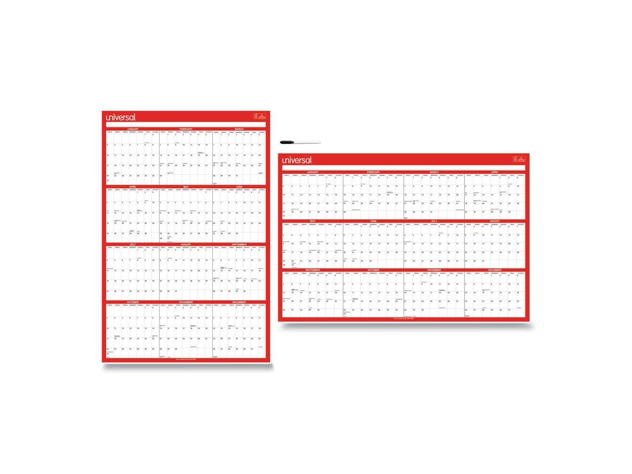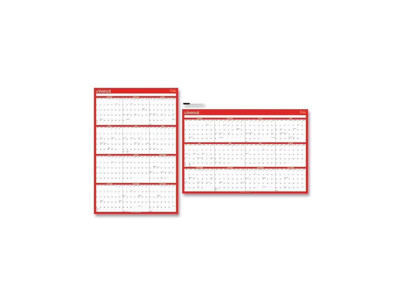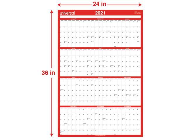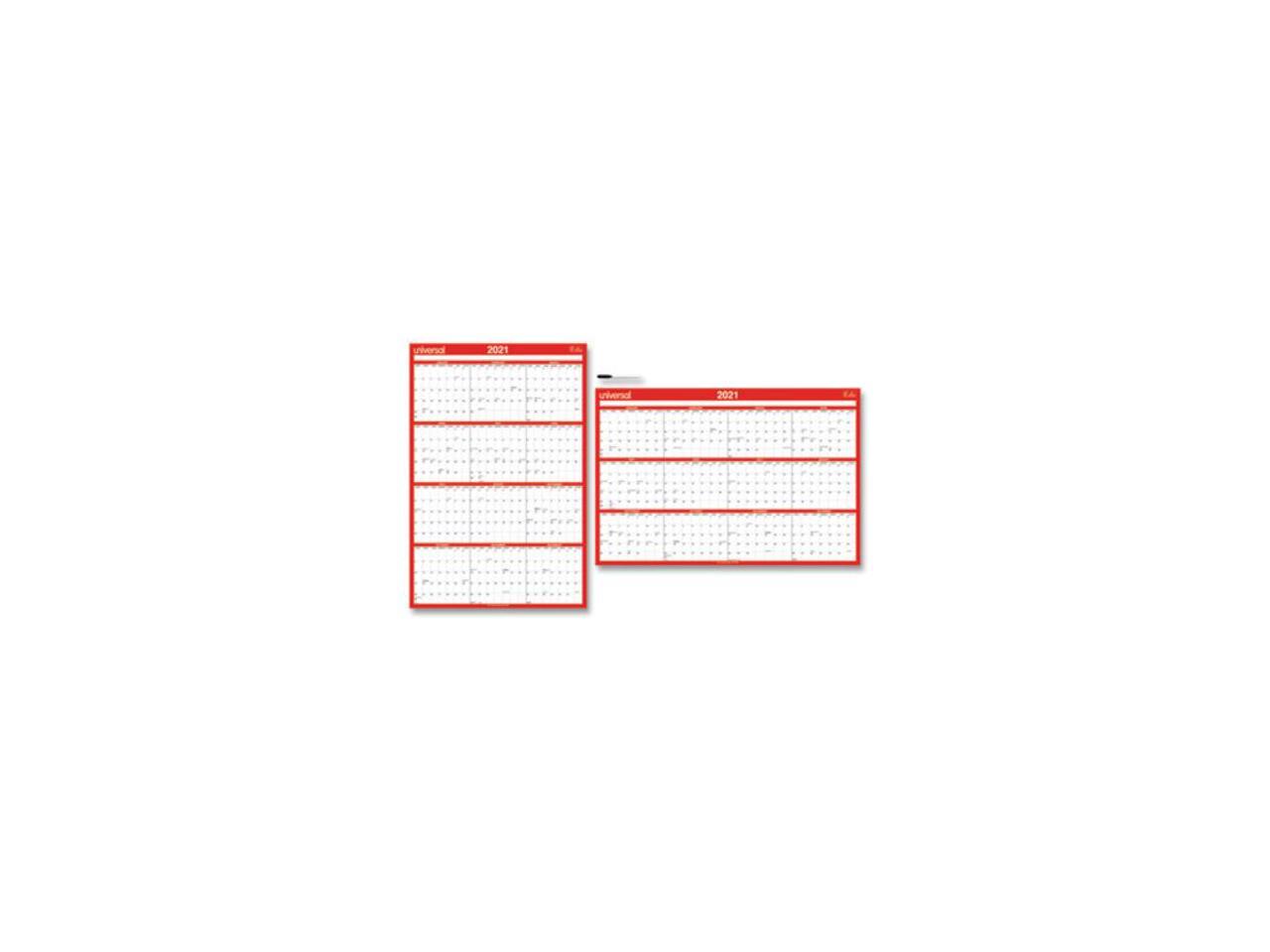 Universal Erasable Wall Calendar 24 x 36 White/Red 2021 71004