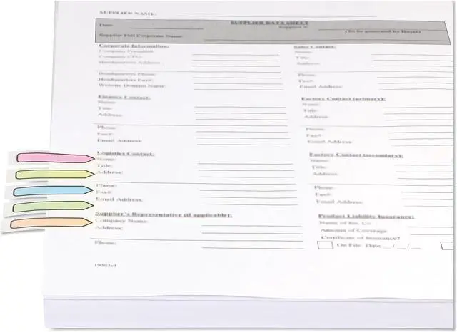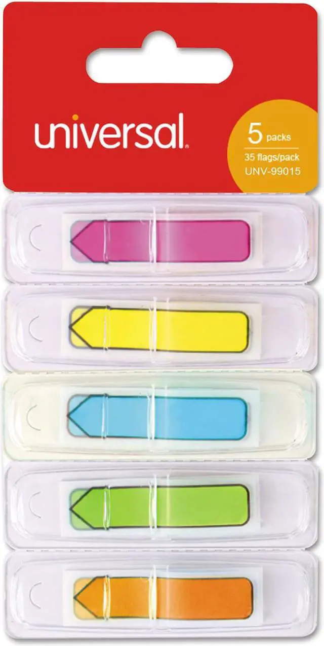 Colorful, self-stick flags are the easiest and cleanest way to mark important information without causing permanent damage to materials. The removable and re-positionable flags come in a handy pop-up dispenser that dispenses one flag at a time and easily fits into a computer bag, accordion file, or pocket. The standard size design fits into all desktop flag holders, for a quality replacement at a reasonable price. Color(s): Assorted; Color Family: Multicolor; Dispenser: Pop-Up; Assortment: Blue; Green; Orange; Pink; Yellow.