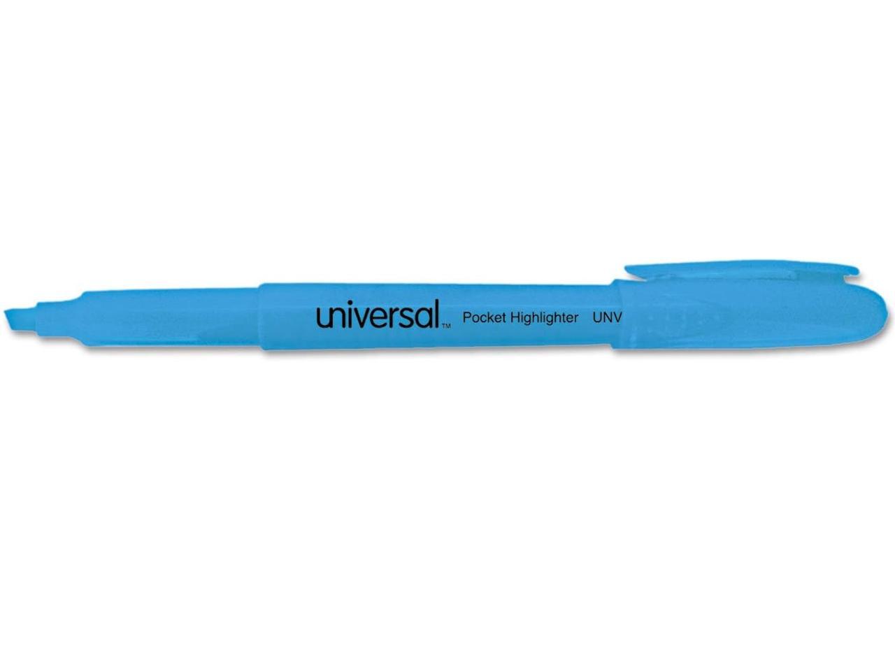 Universal UNV08854 Pocket Highlighters, Chisel Tip, Fluorescent Blue