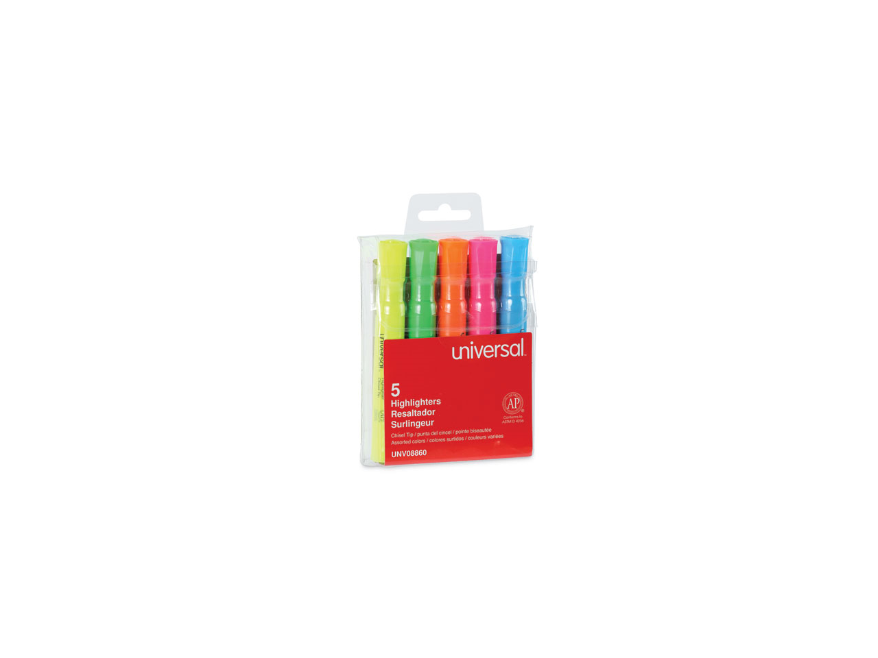 Universal UNV08860 Desk Highlighters, Chisel Tip, Assorted Colors, 5/Set