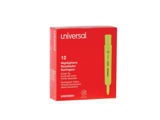 Universal UNV08861 Desk Highlighter, Fluorescent Yellow