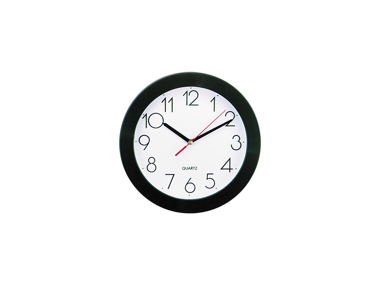 Bold Round Wall Clock, 9.75" Overall Diameter, Black Case, 1 AA Battery