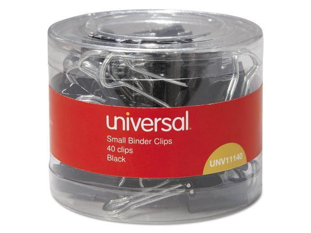 Universal UNV11140 Binder Clips in Dispenser Tub, Small, Black/Silver, 40/Pack