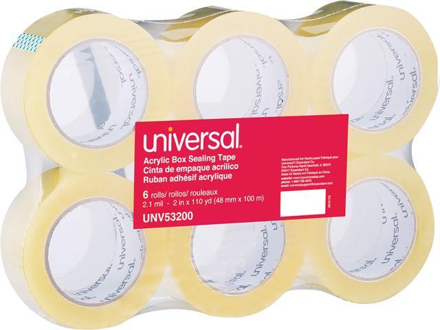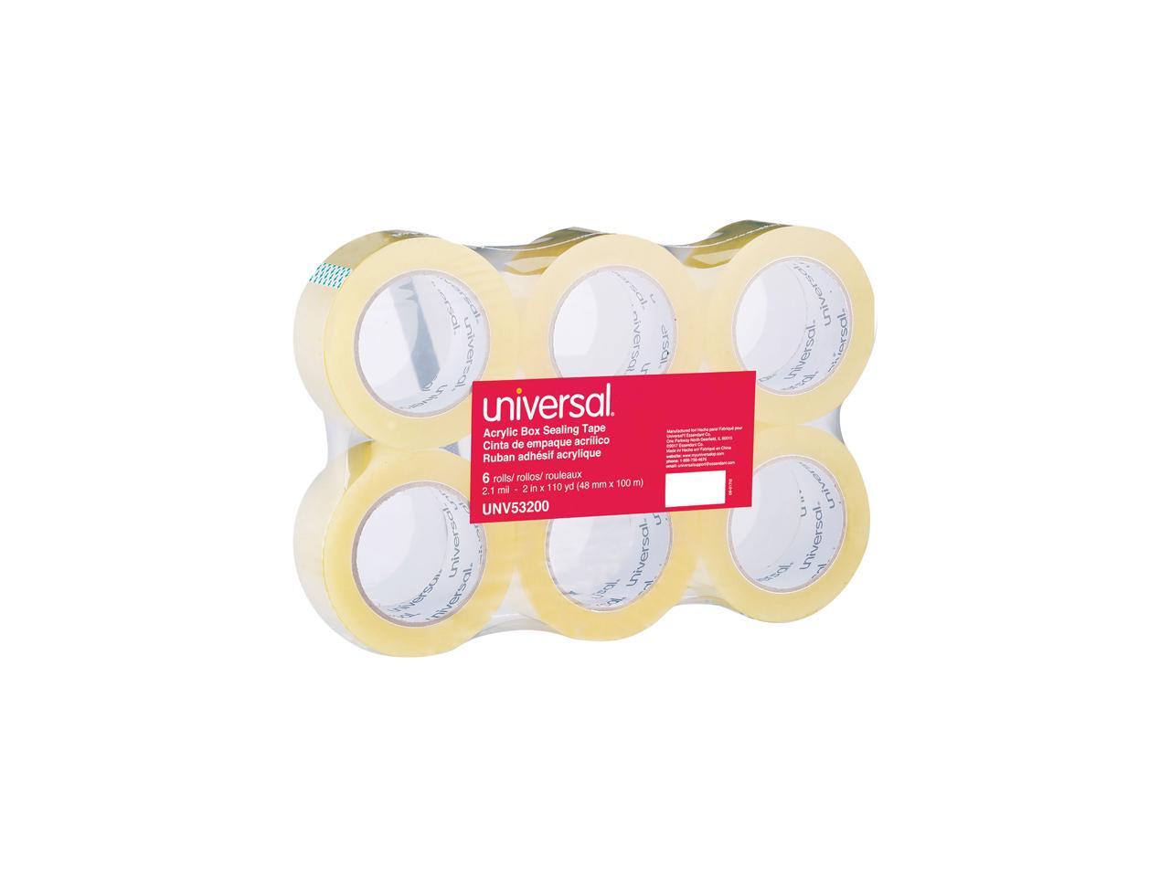 Universal UNV53200 Deluxe General-Purpose Acrylic Box Sealing Tape, 3" Core, 1.88" x 110 yds, Clear, 6/Pack
