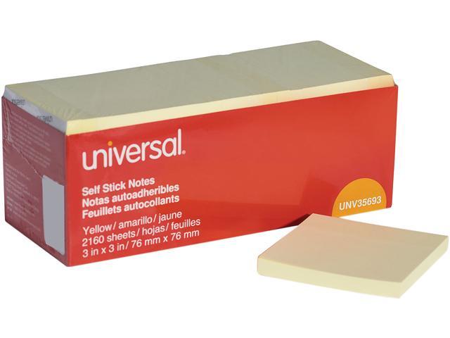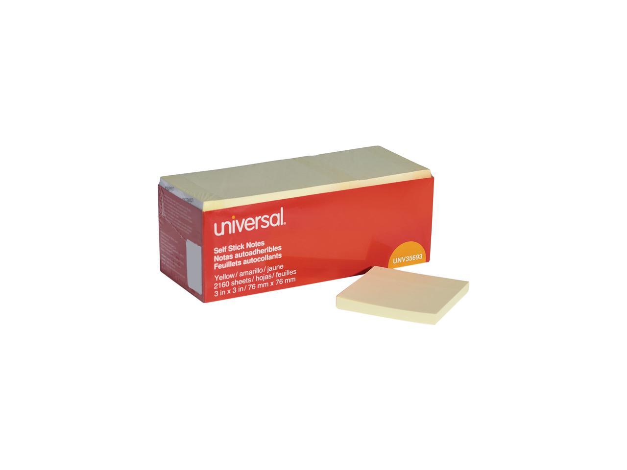 Universal UNV35693 Self-Stick Note Pads, 3" x 3", Yellow, 90-Sheet, 24/Pack