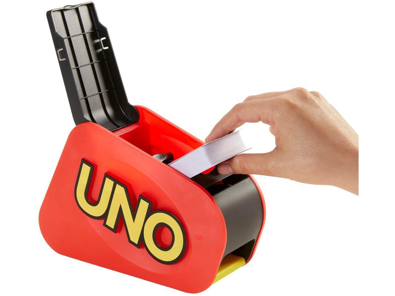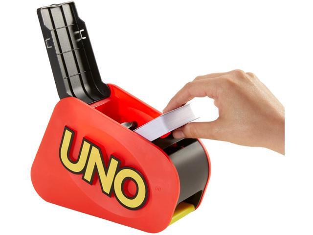 This version of the UNO Attack game brings action, suspense and surprise with its sleek look, cool sounds and high-shooting cards. Lights and sounds build over time for extra excitement!