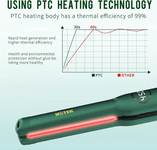 Ceramic Plates & PTC Heat Technology: With Floating ceramic plates straight, PTC heat up in 30 seconds and distributes heat evenly, saving your time less heat damage caused. Ajust ideal temperature with a rotatable wheel.