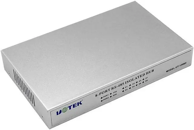 UT-1208H RS-485 HUB provides with star topology RS-485 connection, each port supports short circuit, open-circuit protection. Users can easily change RS-485 BUS structure, and cut the network segment to improve the communication reliability. When lightning or the equipment breaks down, the network segment with problem will be isolated, to make sure the other network segment works regularly. This performance enhances the reliability of RS-485 network, and shortens the network maintenance time. Using UT-1208H RS-485 HUB in a right way will help you create a unique and reliable RS-485 system.