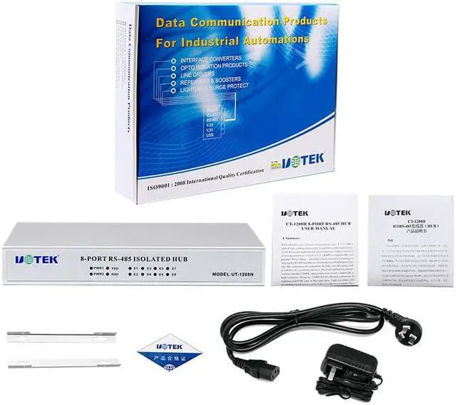 UOTEK Industrial RS-232 RS-485 to 8 Ports RS485 Hub with Optoelectronic Isolation UT-1208H