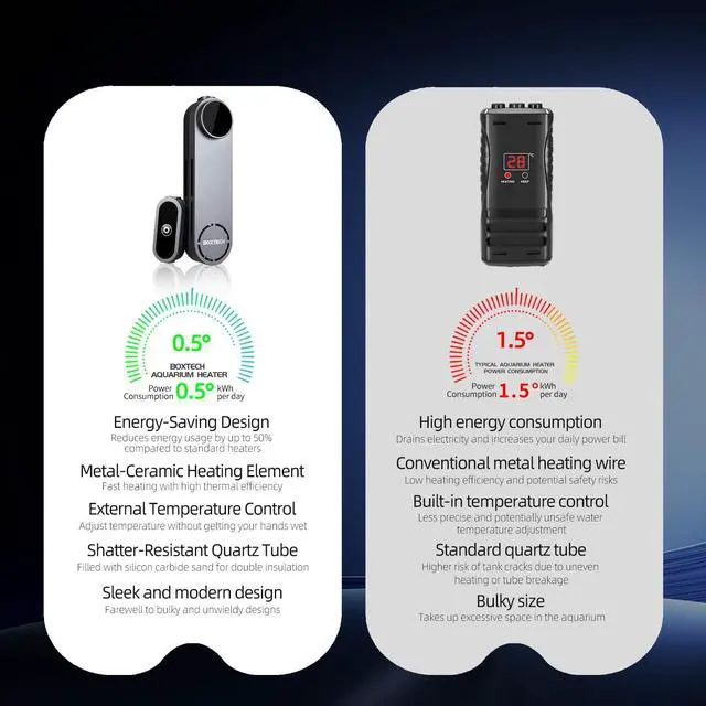 Made with thickened explosion-proof quartz glass and ABS insulation shell. Resists breakage, corrosion, and leakage. Safe for fish and tanks.