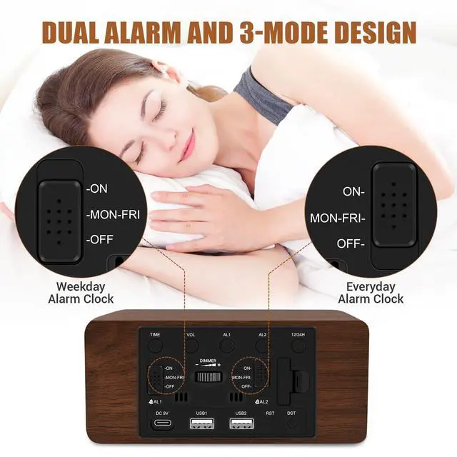 This is the most delicate alarm clock you've ever seen. It's not only a multifunctional alarm clock, but also a great decoration for your home. A sleek and minimalist wood look adds a nature feel to your home.