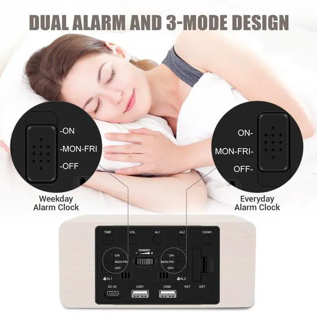 This is the most delicate alarm clock you've ever seen. It's not only a multifunctional alarm clock, but also a great decoration for your home. A sleek and minimalist wood look adds a nature feel to your home.