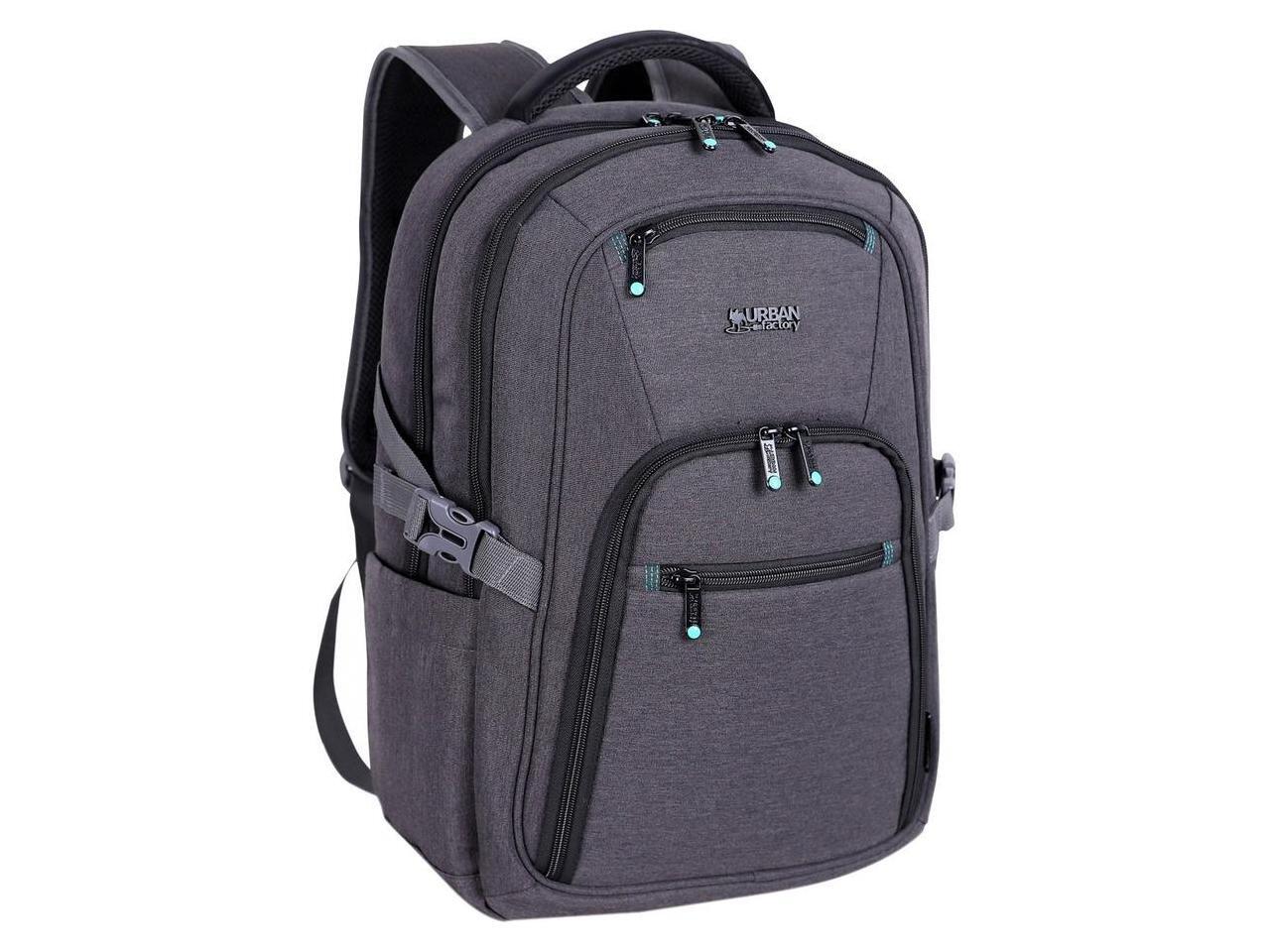 Urban Factory HTE17UF Heavee Eco-Designed Dual Compartment Travel Backpack 17.3 with Rain Cover - For 10.5" to 17.3" Notebook, Tablet, Smartphone - Gray/Black