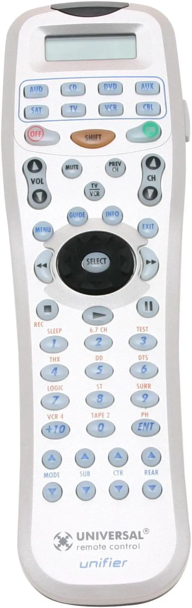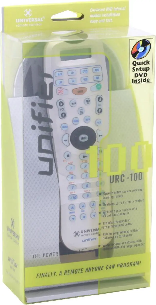 | Features | Transmits both IR and RF signals Includes thousands of built-in pre-programmed codes Replaces up to 8 remote controls Punch through operation for easy control of frequently used functions Automate your system with 24 one touch macro buttons, each with up to 50 commands Retains programming without batteries up to 10 years Works indoors or outdoors with the optional MRF-100 RF receiver |