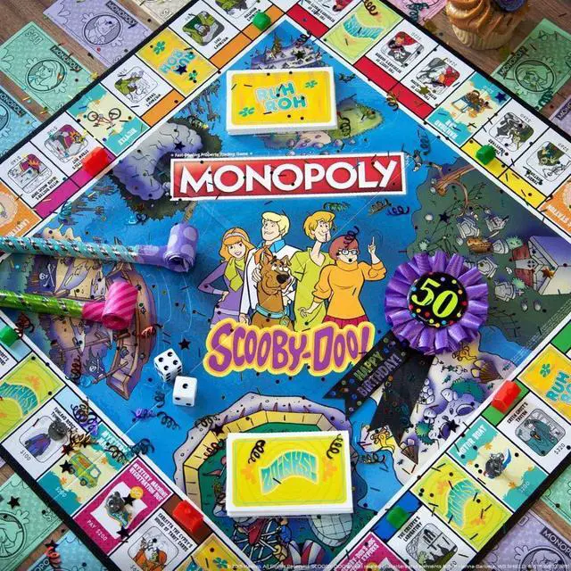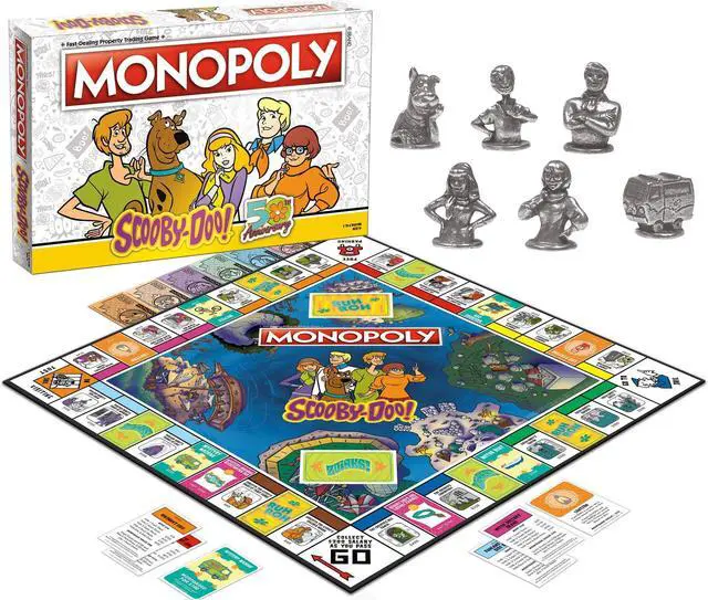 Join Scooby-Doo and the gang as you buy, sell and trade monstrous locations from Scooby's world in MONOPOLY: Scooby-Doo! Bring your favorite memory of Scooby-Doo! to life with this custom Monopoly game. Includes collectable tokens and custom Monopoly money along with Community Chest & Chance cards renamed Ruh-Roh and Zoinks!