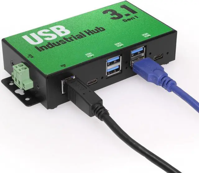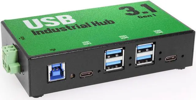 - Industrial-grade USB3.0 hub with metal case suitable for DIN rail mounting