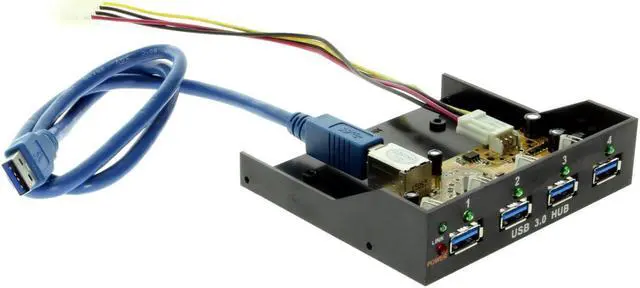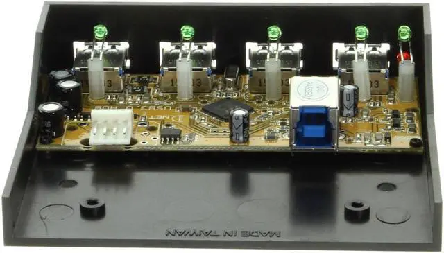 The USB 3.0 internal 4 port bay is an USB 3.0 Hub that complies with the Universal Serial Bus 3.0 (USB 3.0) Specifications Revision 1.0 and work up to 5Gbps. It provides 4 downstream facing ports with standard Type-A USB3.0 connectors and is with built-in single chip USB 3.0 controller.