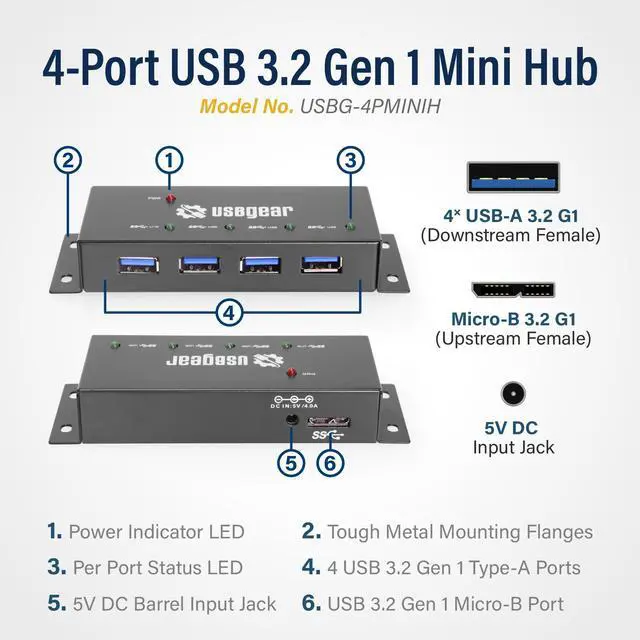 - USB 3.2 Gen 1 4-Port Hub