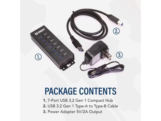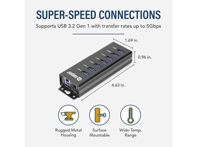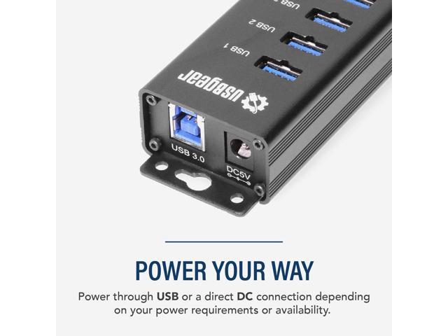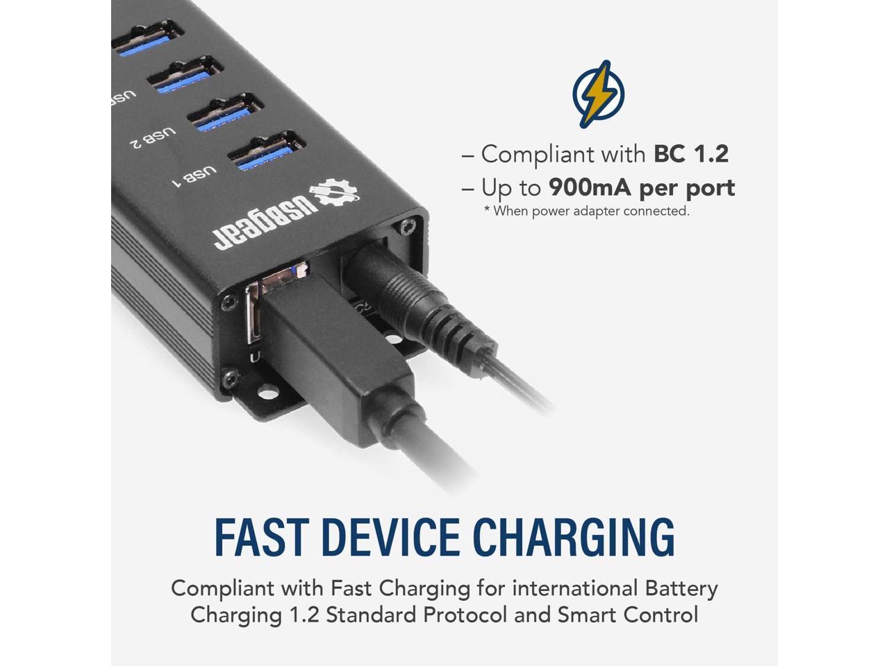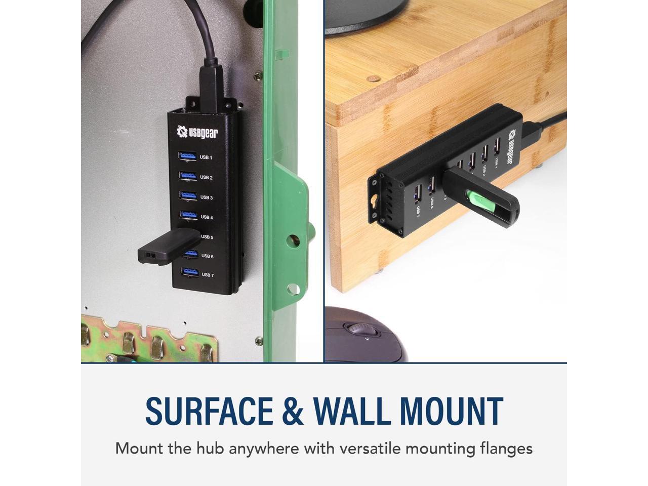 USBGear 7-Port USB 3.0 Mountable Charging and SuperSpeed Data Hub with 5V/4A Power Adapter - USB Type-A to Type-B Cable Included - Up to 900mA per Port Charging - Wall and Surface Mounting