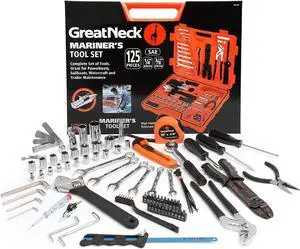 GreatNeck MS125 125-Piece Marine Tool Set, Versatile Boat Tool Kit, Water Resistant Marine Tool Kit Case, Emergency Marine Tool Kit For Boats, Chrome Plated