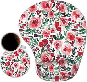 Mouse Pad with Wrist Support, TuLuLu Ergonomic Gel Wrist Rest Pad with Non-Slip PU BaseComfortable Computer Mouse Pad for Laptop Gaming Office Home Easy Typing & Pain Fatigue Relief, Red Flowers