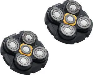 Men 5 Blade Rotary Razor 5D Replacement Head, Alternate Floating Washable Electric Shavers Trimmer Electric Shaving Head (Black-2Pcs)