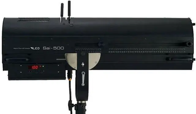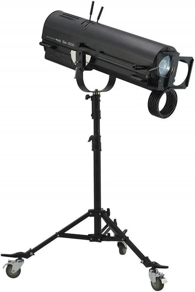 Sai-500 LED Follow SpotMedium-Throw LED Follow SpotThe Ushio Sai-500 is a lightweight and portable 440W medium-throw LED follow spot. Its compact size and low power consumption make it the ideal choice for medium-sized venues. Its portable size and ease of use makes it an ideal lighting instrument for use in theatres, houses of worship, schools, ballrooms, and multipurpose venues. In Japan, Sai means beautiful color. Our unique phosphors vividly and accurately reproduce the natural colors of skin tones, costumes, and backdrops as they were meant to be portrayed by the artists and designers.