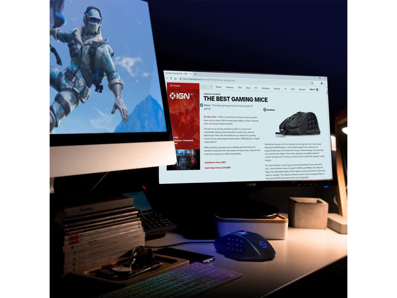 UtechSmart Venus RGB Gaming Mouse, Wired 16400 DPI High Precision Laser Programmable MMO Computer Gaming Mice