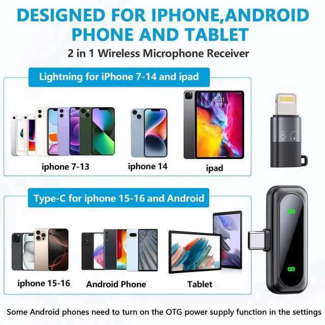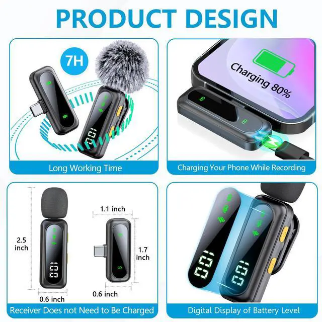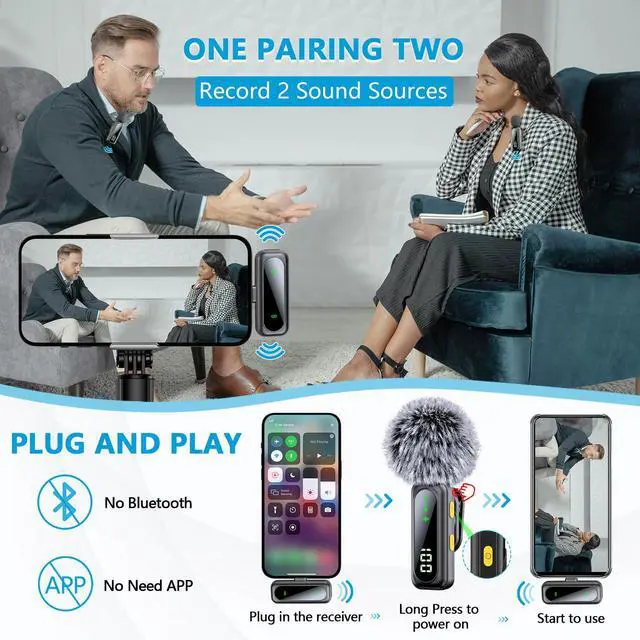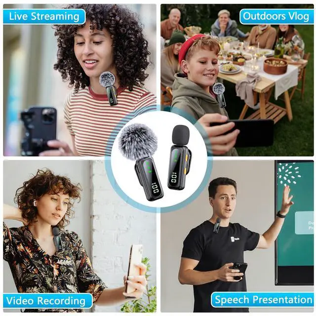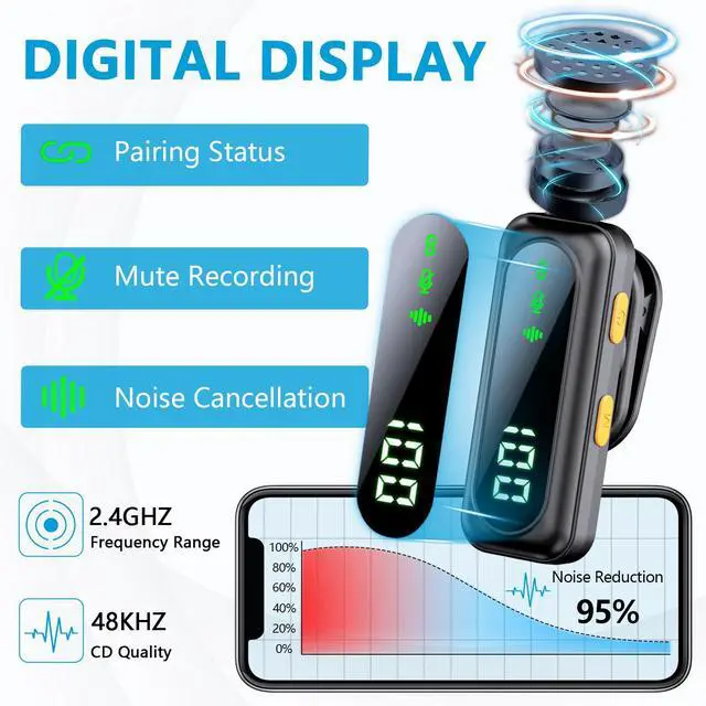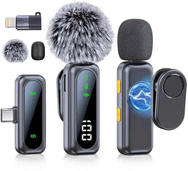Mini Microphone for iPhone 15 16/iOS/Android Devices, Utsund LED Display Wireless Microphones for Video Recording, Lavalier Microphone Clip on Lapel Lav Mics for Vlog YouTube TikTok