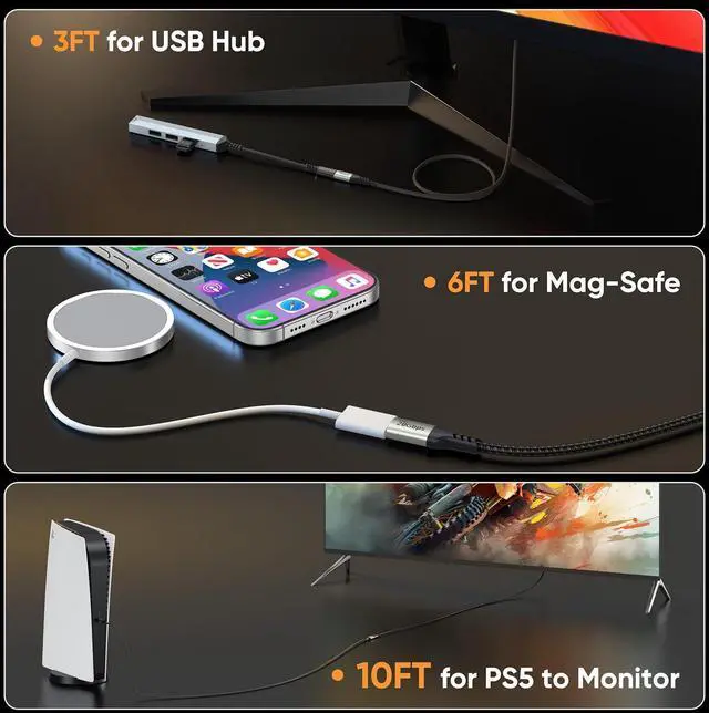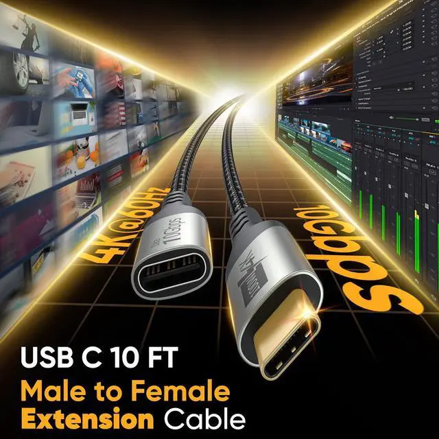 Perfect for Portable Monitors & Long-Distance UseThis 10 FT USBC monitor extension Cord is ideal for connecting to popular portable monitors (KYY, MNNQ, ARZOPA, InnoView, ViewSonic, ZenScreen, etc.), providing long-range, stable 4K@60Hz video transmission with no lagperfect for mobile workstations or home setups.