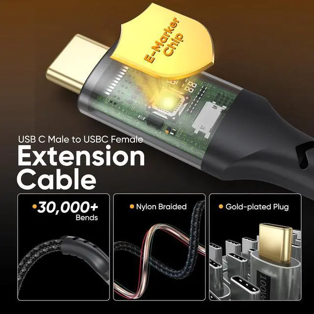 100W Fast Charging 100W USB-C Extender Cable built-in E-Marker chip ensures safe fast charging It supports PD 3.0, QC 5.0, QC 4.0, and QC 3.0 for all usb/type-c power devices. Rapidly charges Mag-safe MacBook series, iPad, iPhone 15/16/17 Pro Max, Google Pixel XL/2/3/3a series and Galaxy S21-S25/Note 10/A80 and other phone and laptop USB-C devices from 0% to 85% in just 30 minutes