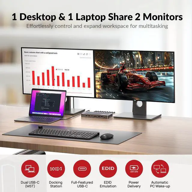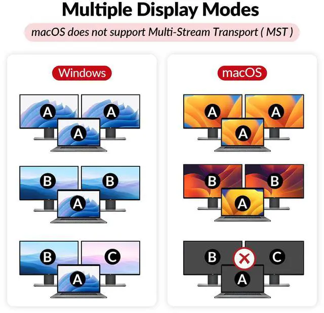 - USB-C input supports DP MST mode with dual 4K@60Hz outputs.