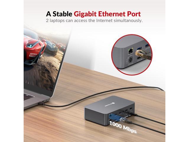 - Connect, Charge, Transmit Data, All at Once: With the dual full-featured USB-C ports (20Gbp/s) on the dual monitor KVM switch for 2 laptops, you can easily input 4K UHD video and transmit data up to 5Gbp/s. Charge two laptops simultaneously with up to 60W each while staying connected to the Internet via the LAN port.