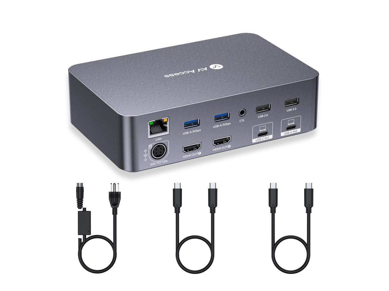 AV Access KVM Switch Dock 2 Monitors 2 Laptops, 4K KVM Switch Dual HDMI Monitor, 2 USB-C MST Ports, 60W PD for Each PC, 1G Ethernet, EDID Emulation, 2K@144Hz,1080P@240Hz(iDock C20)
